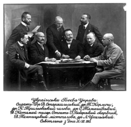 1 У Комітеті десяти «Молодої України», зокрема, Є.Косевич, В.Стapoсольський, В.Темницький представляли соціал-демократичну течію, О.Грабовський, А.Кpyшельницький – paдикальну, М.Галyщинський, Л.Цегельський – національно-демократичну, С.Гоpyк – християнсько-національну, Т.Мелень – теоретично-монархістську, ім’я десятого члена – невідоме.