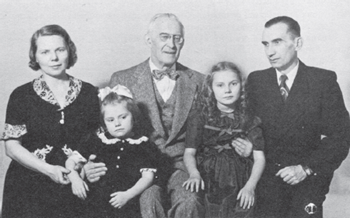 Лонгин Цегельський з сином Юрієм, його дружиною Веронікою Дроздовською та онучками Анізією і Олею, Філадельфія, 1949 рік