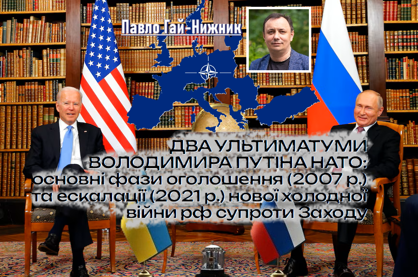 Опубліковано: Гай-Нижник П. Два ультиматуми володимира путіна НАТО як основні фази оголошення (2007 р.) та ескалації (2021 р.) нової холодної війни рф супроти Заходу // Україна дипломатична. – Вип.ХXVI. – К., 2025. – С.102–117.
