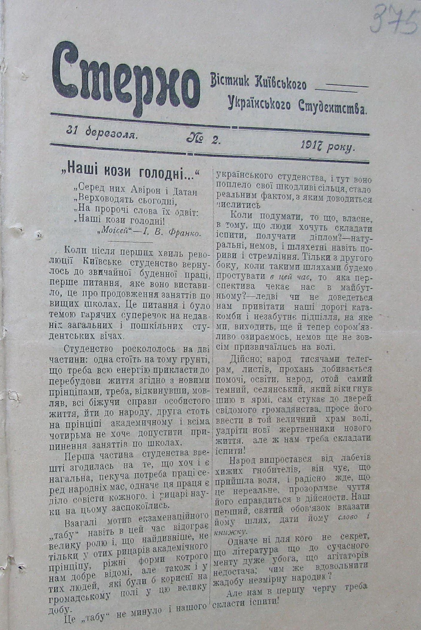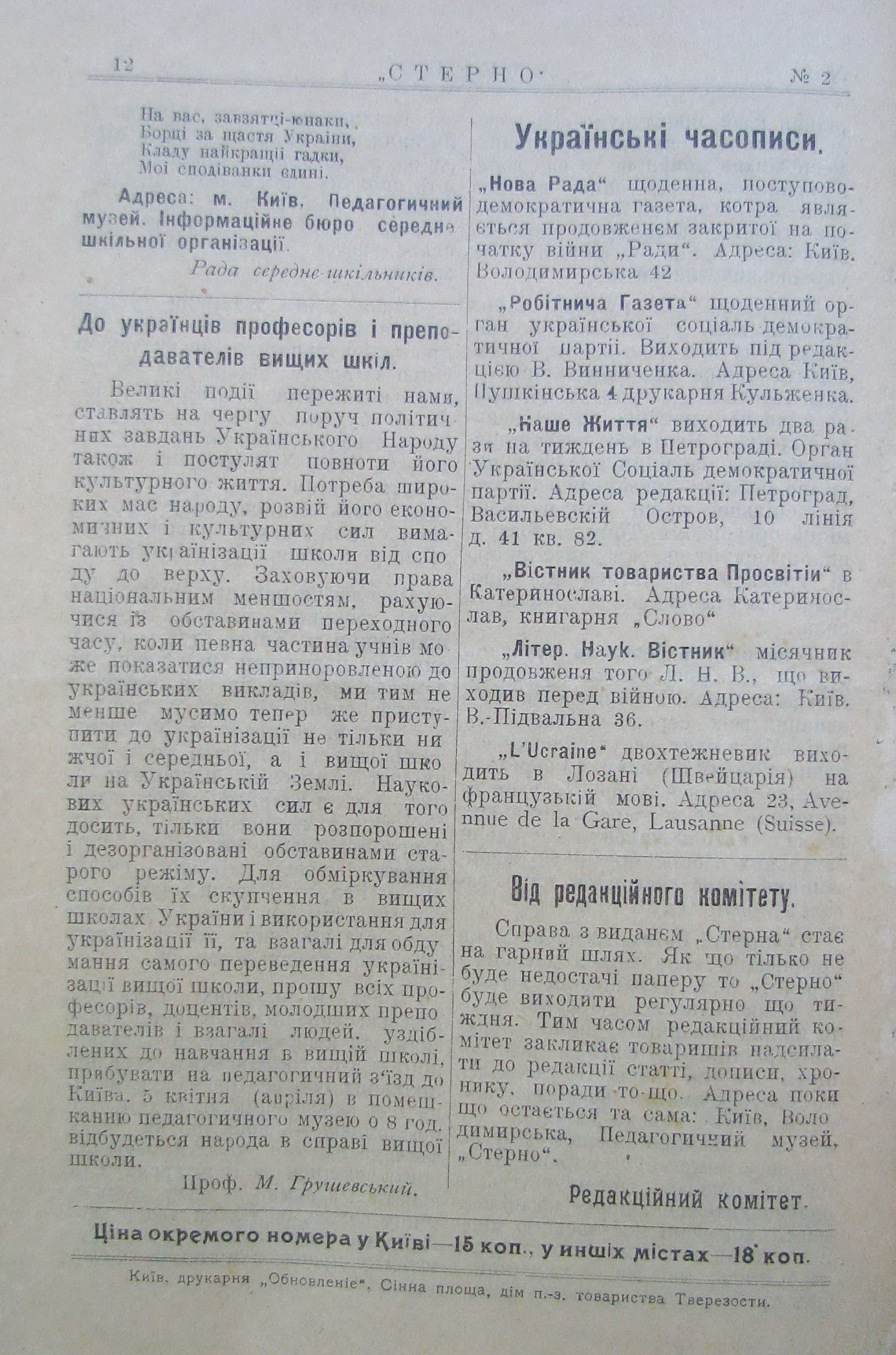(Вісник Київського Українського студентства).
