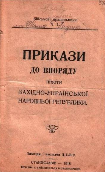 ![листопад-грудень 1918 р. - Прикази до впоряду піхоти Західно-Української Народньої Республики (Станіславів, 1918 р.) [Польовий статут Армії ЗУНР]](zobrazennya/1918 (...) ..prykazy.jpg)