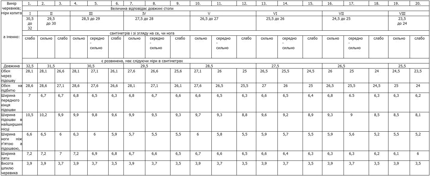 | Вимір чобота | ||||