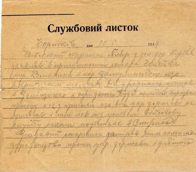 ![20 червня 1919 р. - Службовий листок УГА (м.Чортків) [з приводу зрадницьких дій сотника Гіляра]](zobrazennya/1919 (06) 20. sluzbdvy lystok UGA.jpg )