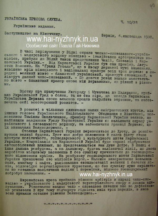 Повідомлення бюлетеня Української пресової служби про події в Карпатській Україні
