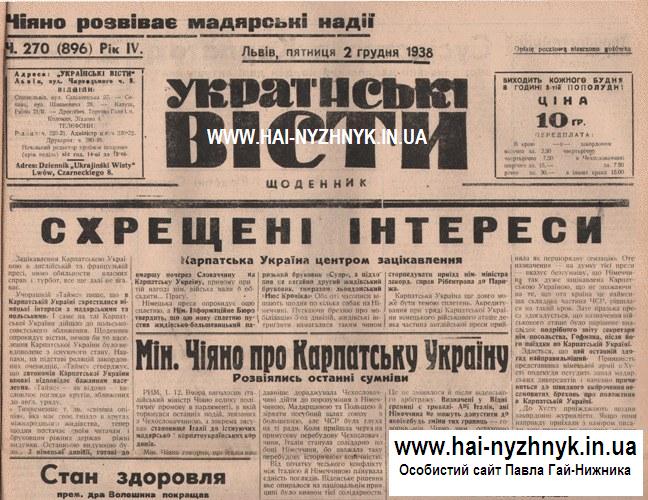 (статті з львівської газети «Українські Вісти»)