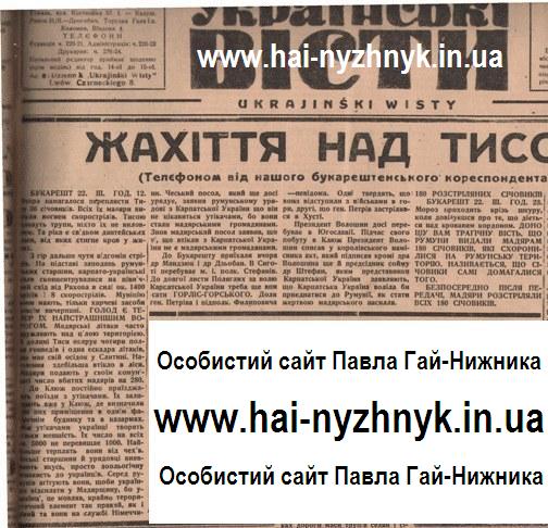 (репортаж з Бухареста у львівській газеті «Українські Вісти»